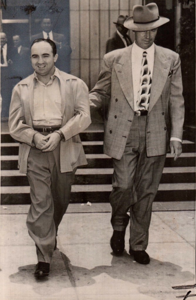 Losing his wife, Frances, to cancer in 1953, and his own failing health made life exceptionally difficult for Jack Dragna. His lifestyle and gambling operations suffered, hampered again and again by excessive deportation efforts and an aggressive campaign of harassment led by the follow on to the L.A. Gangster Squad–Captain Lynn White’s Intelligence Division. Obstacles such as this kept The Dragna brothers from getting better-established in Nevada. Although Jack and Tom owned various properties in and around Las Vegas, applied for a gaming license in the area, and even built a ranch on the outskirts of the city, continued rousts and an order restricting Jack to L.A. County, kept the plan to expand into Nevada from Ever seeing fruition. Despite the hurdles, the Dragnas did manage to put together a beneficial “juice” arrangement with the Sheriff’s Department. federal files also reveal the Dragnas received a regular piece of the action from casino operator Benny Binion, and a wire-tapped telephone conversation strongly suggests Jack and his associate Allen Smiley held an interest in the Desert Inn.