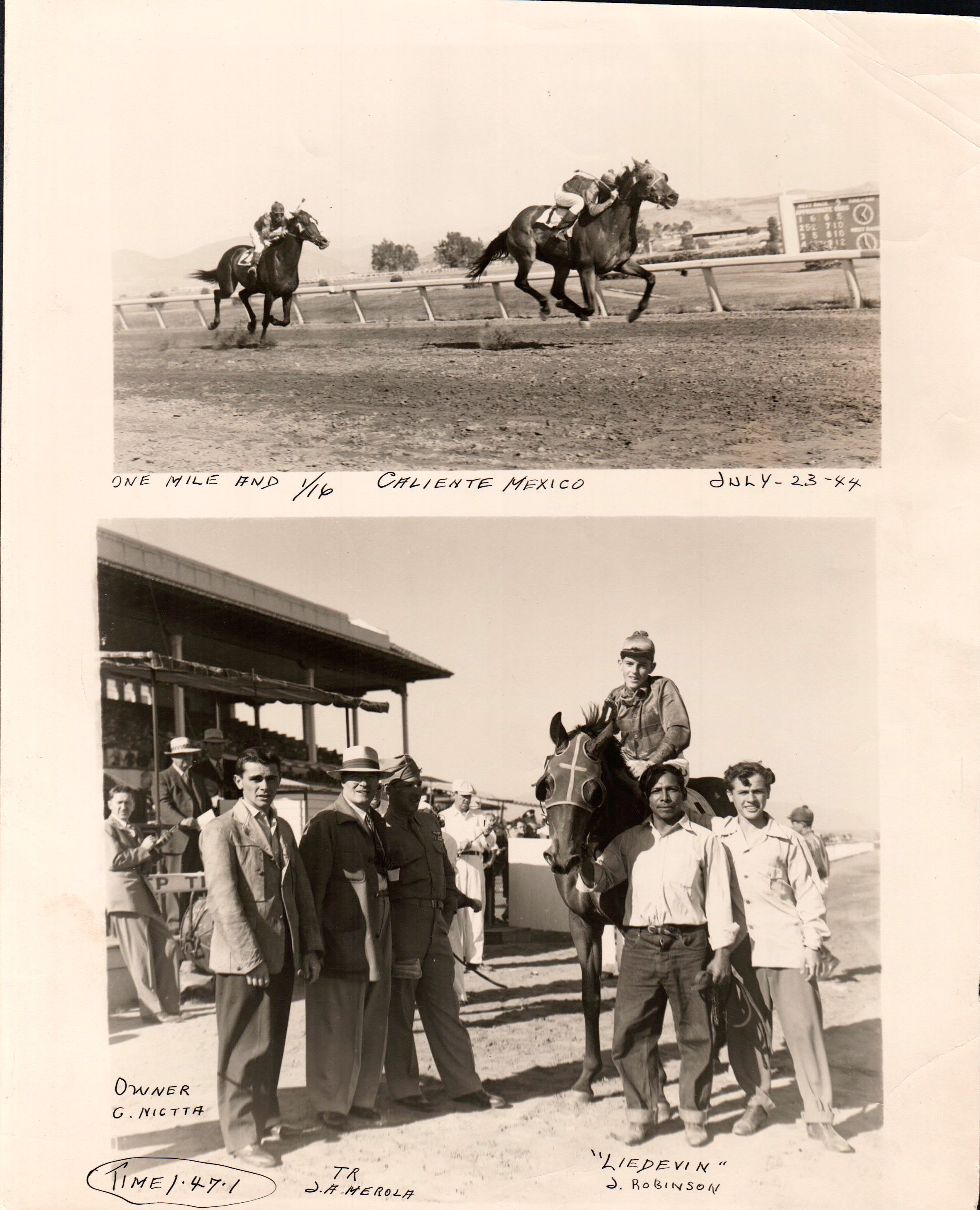 Big George and his son Stevie watching their race horse run down in Mexico.